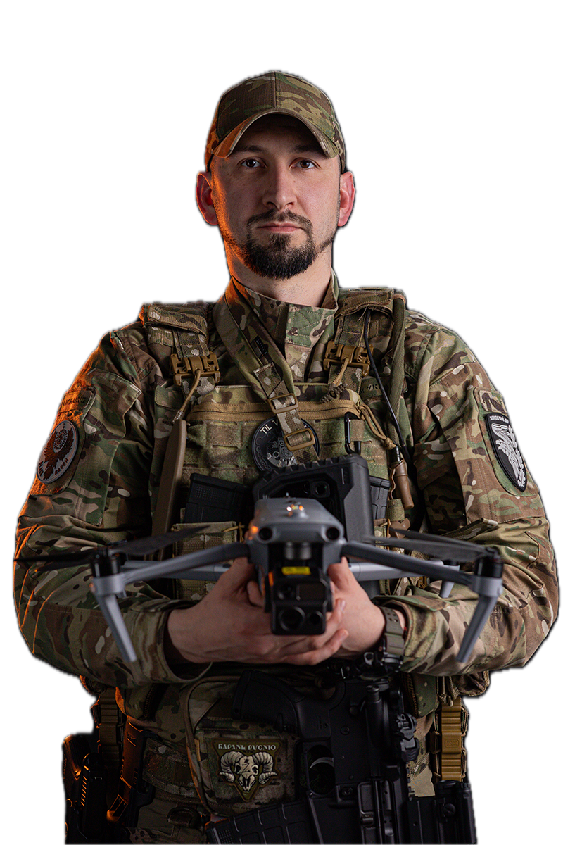 До повномасштабного вторгнення - приватний підприємець, працював у торгівлі. Мобілізувався 27 лютого 2022-го. Два місяці служив стрілком у центрі комплектування, у травні потрапив у 93-тю бригаду - у взвод розвідки 2-го стрілецького батальйону. Воював у Курульках, під Малою Комишувахою на Ізюмському напрямку. З серпня - у Соледарі. Навчався аеророзвідці, щоб ефективно коригувати артилерію і шукати позиції противника. Під час Бахмутської кампанії у жовтні 22-го став командиром відділення БПЛА, а у березні 23-го - командиром взводу розвідки батальйону - корегував міномети, роботу танків із закритих позицій. Водночас взвод почав літати в інтересах бригади, допомагав налагоджувати роботу аеророзвідки в батальйонах.У жовтні 2023 року отримав звання офіцера і прийняв посаду командира роти ударних безпілотників. Почав налагоджувати групи FPV-дронів - камікадзе і бомберів, застосовувати нічні бомбери, розвідувальні та ударні “крила”.